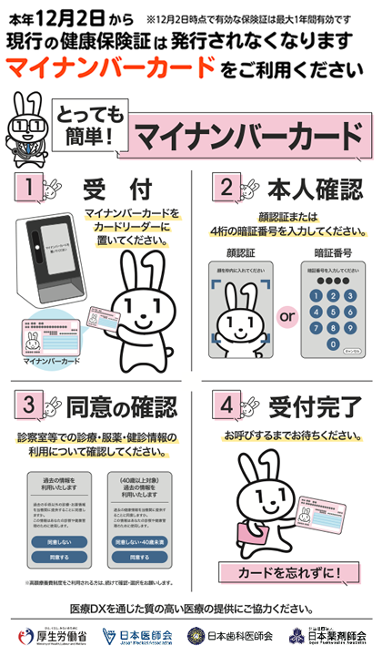 ⑥ マイナンバーカードの健康保険証利用の使用について、ポスター掲示、お声掛けを行っています。